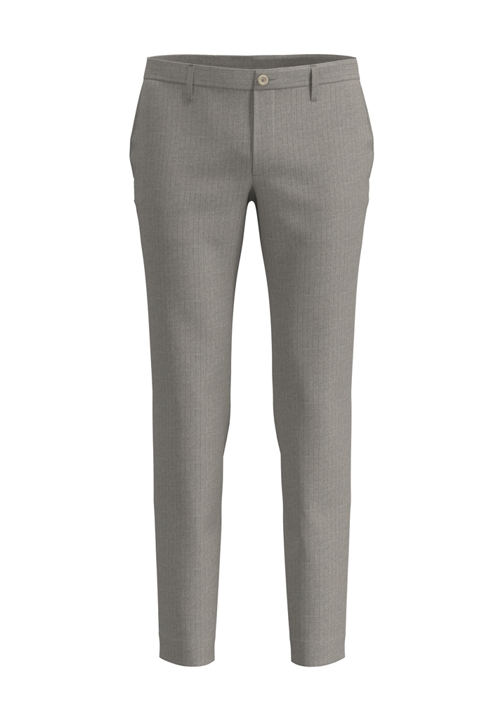 Materiaal: Wol / polyester / viscose / polyamide / elastaan Kleur: Licht grijs Pasvorm: Slim fit Bijzonderheden: Streep
