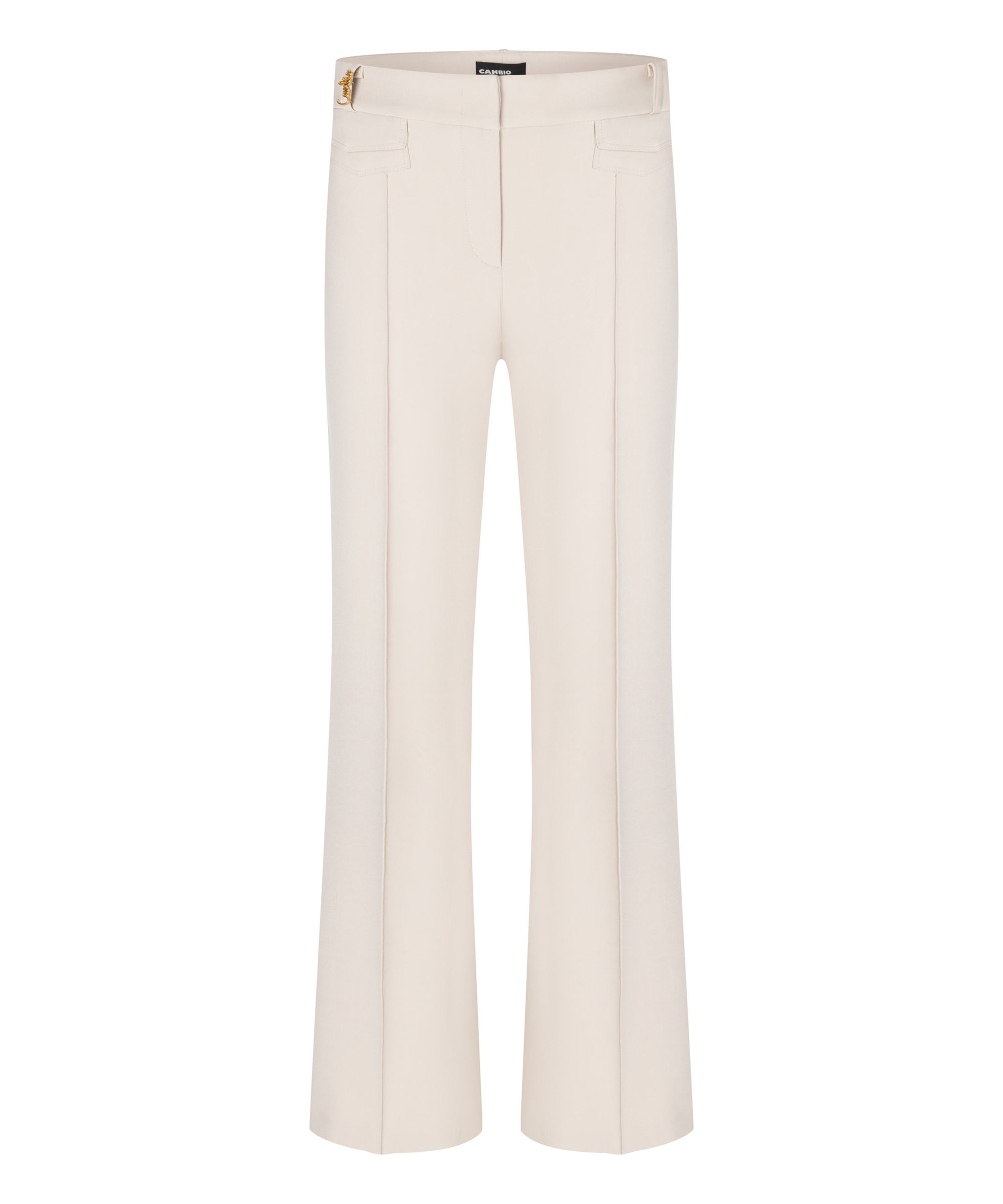 Materiaal: Polyester / Viscose / Katoen / Elestan Kleur: Beige Pasvorm: Flair Bijzonderheden: Zakjes op voorpand, paspel zakken op de achterkant, met persnaad