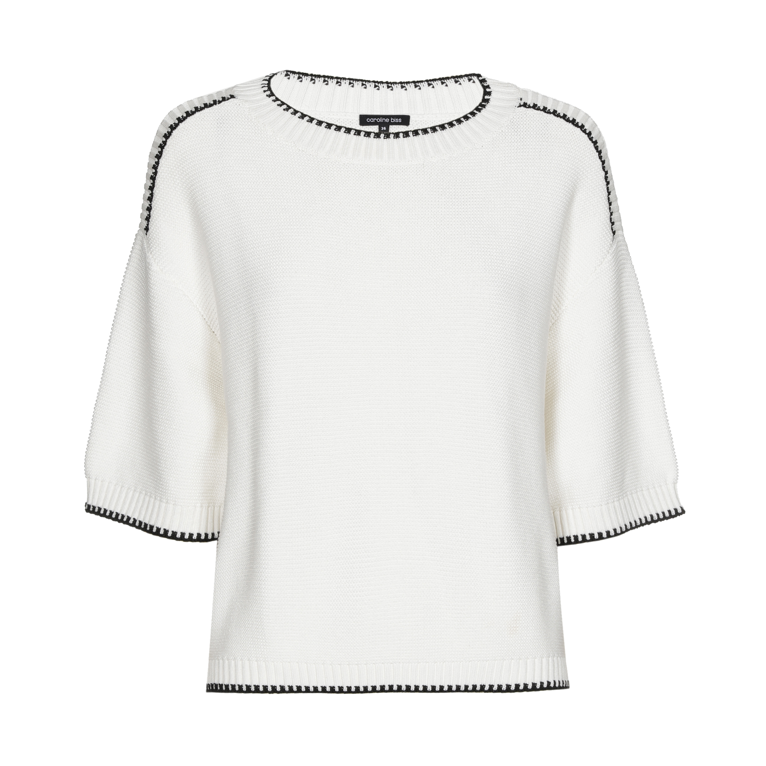 Bijzonderheden: Gebreide pullover, omranding afgewerkt met zwarte bies