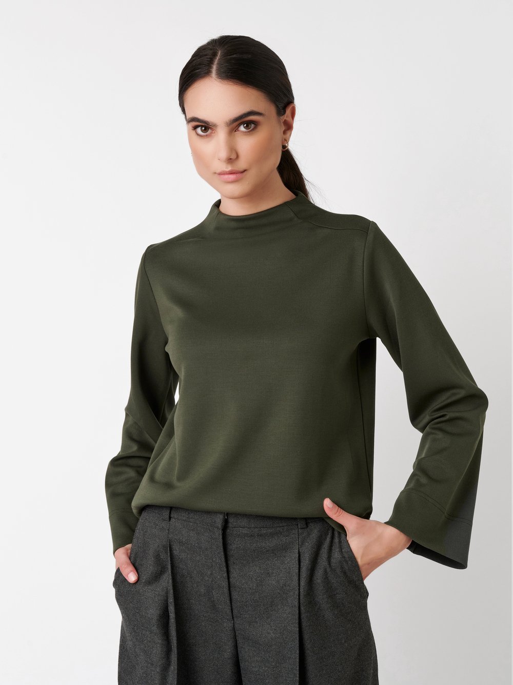 Bijzonderheden: Opstaand boordje / uitlopende mouw