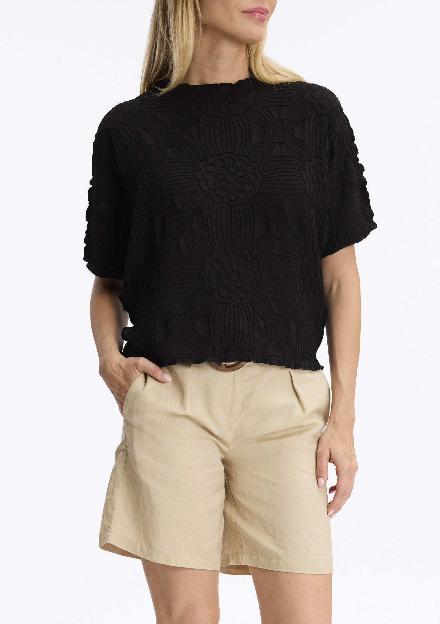 Bijzonderheden: Stretch, aangeknipte mouw, top bewerkt met bloemen patroon