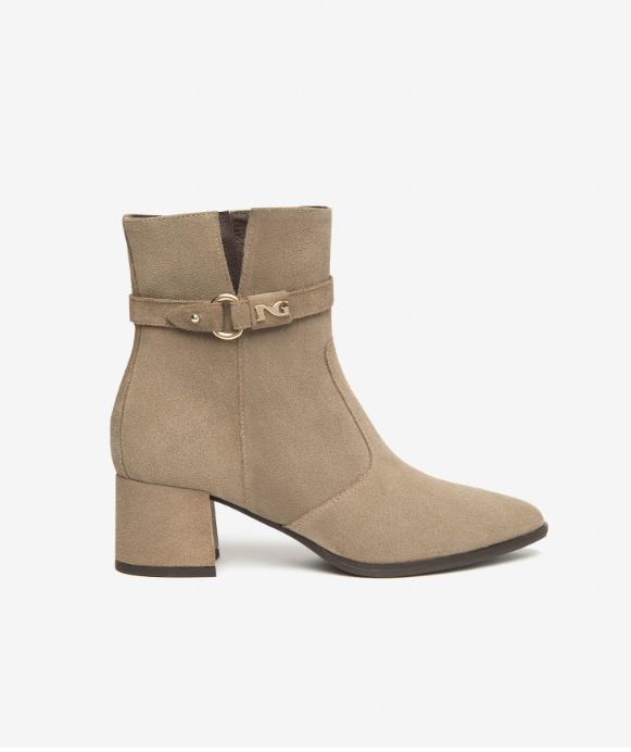 Bijzonderheden: Makkelijke instap , Ritssluiting binnen kant been , Buiten kant gesp goud kleur , spitse neus , hak van suede
