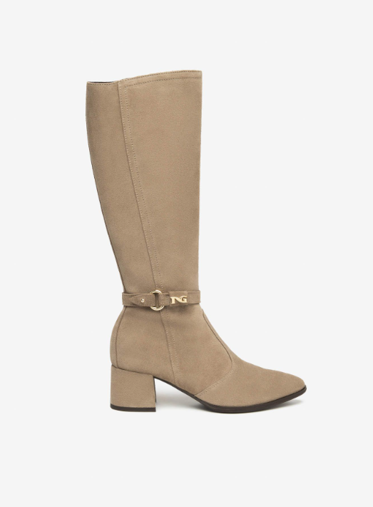Bijzonderheden: Makkelijk instapbaar , Ritssluiting binnenkant been , geen uitneembare zool , Gesp zilver kleur , suede hak