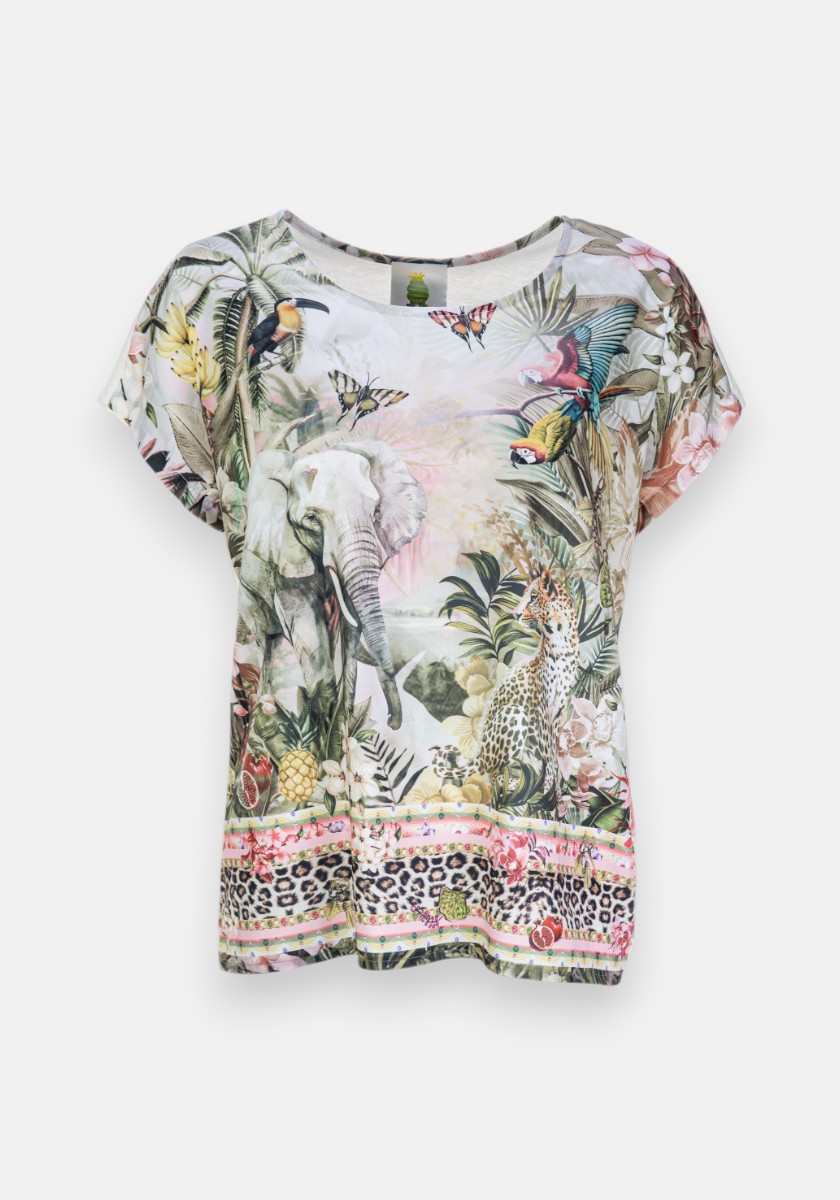 Bijzonderheden: Ronde hals / achterzijde effen kleur ecru