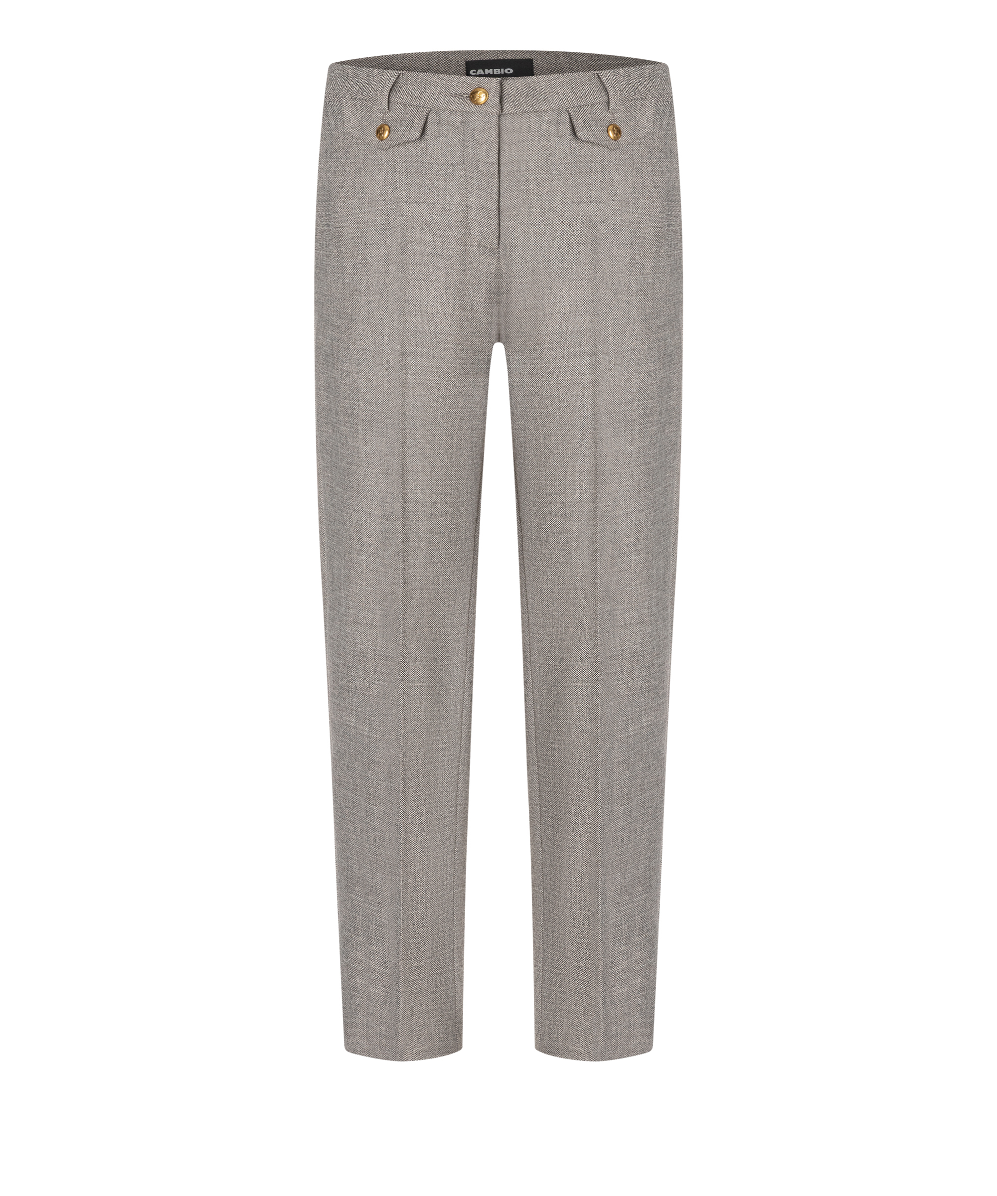 Materiaal: Wol / viscose / polyester / elastan Kleur: Grijs Pasvorm: Normaal Bijzonderheden: Steekzakken, twee klepzakjes op voorpand
