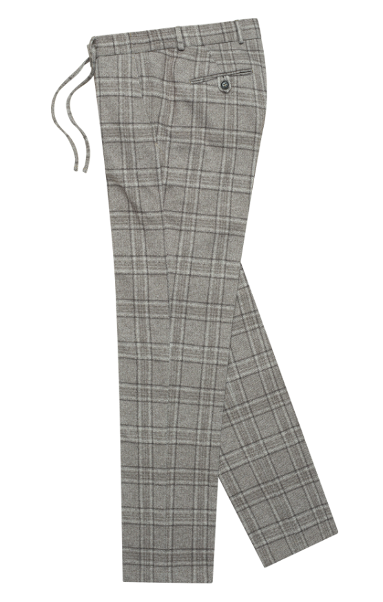 Materiaal: Polyester / Katoen / Elastan Kleur: Beige Pasvorm: Normaal Bijzonderheden: Band met een koord en ruit in de stof