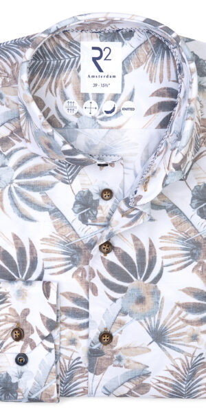 R2 Overhemd Bloemenprint Wit-Groen-Blauw 031-014