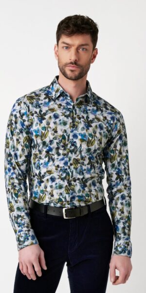 Desoto Heren Overhemd Kent Green Blue Flowers